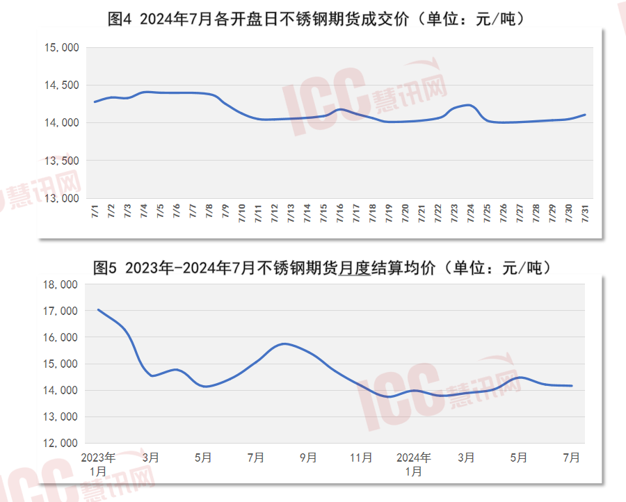 从月度结算均价看:3-5月,得益于一系列地产利好政策出台、镍价拉涨等利多消息推动下,期货价积极响应,呈现上涨趋势;但是,鉴于当前处于需求淡季,6-7月价格未能持续上涨,呈现回落态势,环比分别下滑1.8%和0.3%。