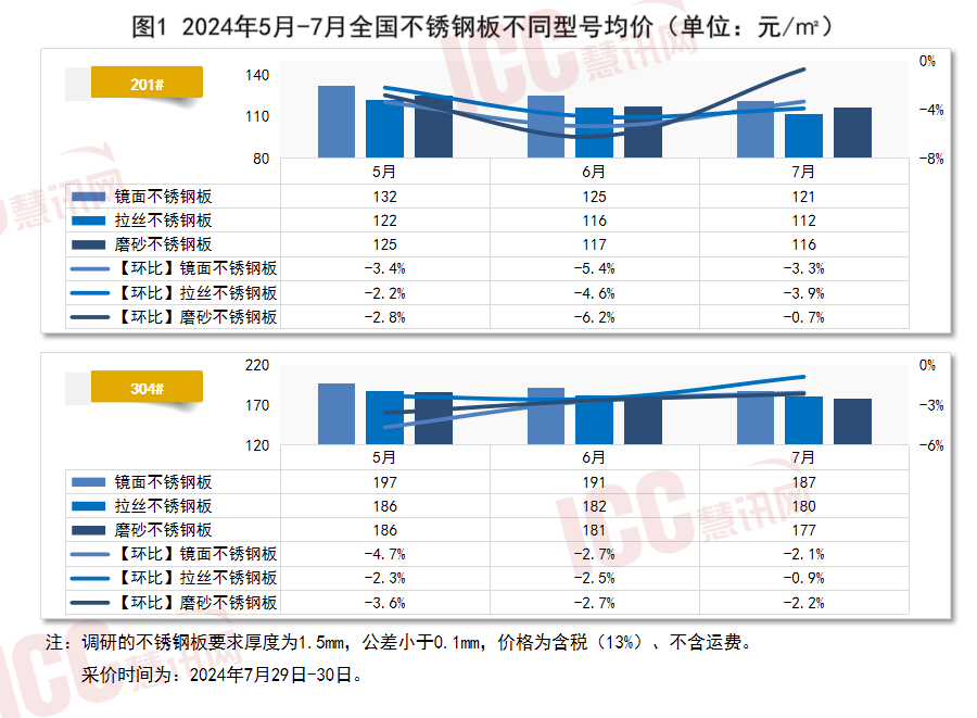 2024年7月,慧讯网调研全国42家不锈钢厂商,价格样本250个。调研数据显示:传统消费淡季,市场需求呈乏力状态,部分厂家为减轻销售端压力采取积极措施,大幅下调现货不锈钢板价格。